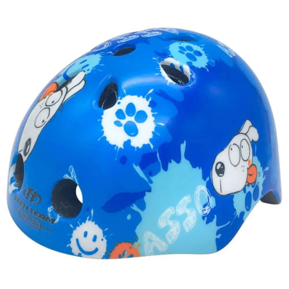 Имеется 11 отверстий, благодаря которым, внутри шлема проходит отличная вентиляция. Идеально подойдет для активных прогулок на любом средстве передвижения. Во время падения и удара шлем возьмет на себя всю нагрузку, благодаря чему удастся избежать различных травм. Стильный синий цвет с узорами очень полюбится мальчикам.