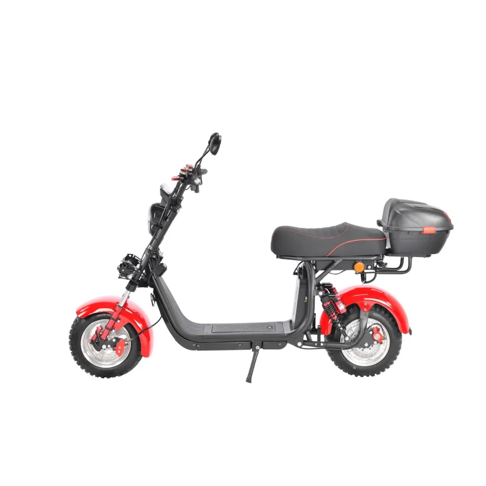 Электроскутер CityCoco WS-Pro+ 2500W – произведенная в красных цветовых оттенках техника способна доказать совершенство езды на практике. Пневматические агрессивные колеса, по внешнему виду напоминающие шины внедорожника созданы для езды по городской местности и бездорожью. Убедиться в технических характеристиках можно прямо сейчас. Предлагаем сделать заказ и купить электроскутер в нашем интернет-магазине.