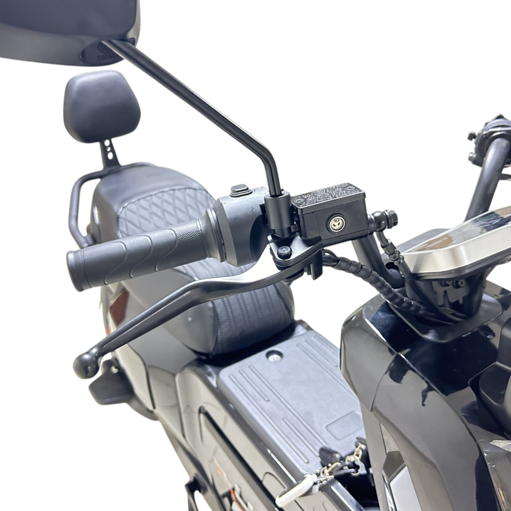 Электроскутер GT U2 PRO в черном исполнении — это сочетание мощности и элегантности. Двигатель 1500W и максимальная скорость 70 км/ч позволяют уверенно передвигаться по дороге. С запасом хода до 70 км и аккумулятором 30Ah, вы можете наслаждаться длительными поездками без подзарядки. Скутер поддерживает нагрузку до 160 кг, что позволяет взять с собой пассажира, для которого предусмотрены отдельные подножки. Дисковая гидравлическая тормозная система обеспечивает надежное торможение, а подвеска спереди и сзади сглаживает неровности дороги. Большая фара освещает путь в темное время суток, а современный дизайн подчеркнет ваш стиль.