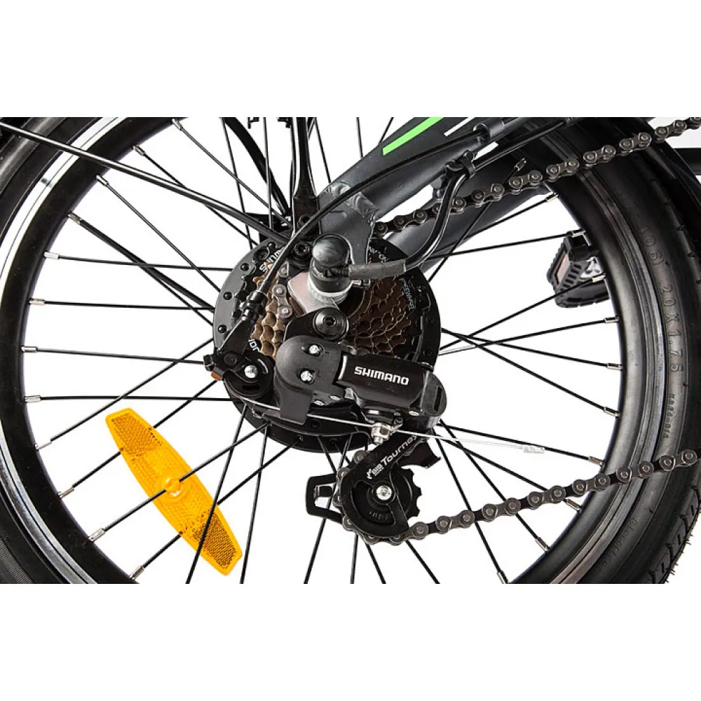 Над задним колесом расположен металлический багажник для надежной фиксации личных вещей. 20-дюймовые колеса повышают маневренность электровелосипеда, а амортизированная подвеска позволяет комфортно преодолевать неровности дороги. Велогибрид Eltreco LETO весит меньше 22 килограммов и имеет складную конструкцию. В сложенном виде данная модель настолько компактна, что без труда поместиться в пассажирском лифте или багажнике автомобиля.