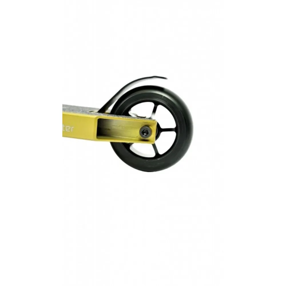 Трюковой самокат Huoli Sand золотой выглядит презентабельно. Дизайн подчеркивает, модель создана для лидеров победителей, целеустремленных личностей, для которых первые позиции на соревнованиях занимают приоритетные цели.